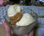 って事で、出来上がったキャラメルをアイスにかけてみましたよーー!!